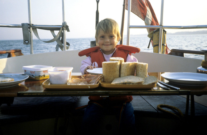 Som 3 årig sejlede jeg sammen med mine forældre rundt i folkebåd i Danmark. Den var uden rækværk, så du kan nok forestille dig at der var nogle der var nervøse. Jeg fik dog aldrig at vide jeg skulle passe på, og med en fantastisk balance skete der aldrig noget. Jeg var bundet fast med et langt reb i en redningsvest, men det blev heldigvis aldrig aktuelt at skulle hive mig op. Ikke ret lang tid efter købte vi Madam Madsen, en skøn gul båd med sort mast og et fint rækværk! (Se foto af mig herunder, foran et skønt frokostbord i båden.)