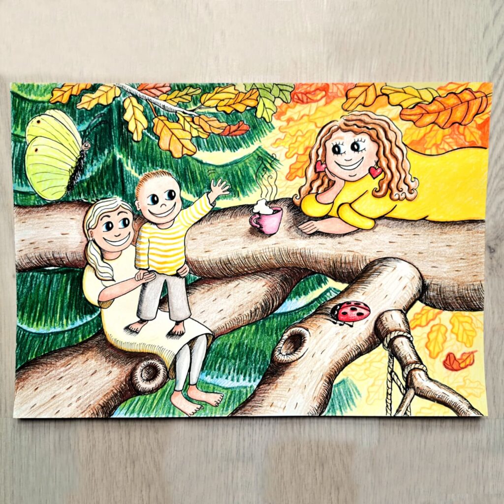 “Mindetegningen betyder alverden for mig. Min søster gik bort lige i det, at jeg blev mor, og hun selv blev moster. Gitte har på den fineste måde fået så mange detaljer med i et helt særligt univers og har helt ramt den forbindelse, der er mellem min søster, min søn og mig selv.